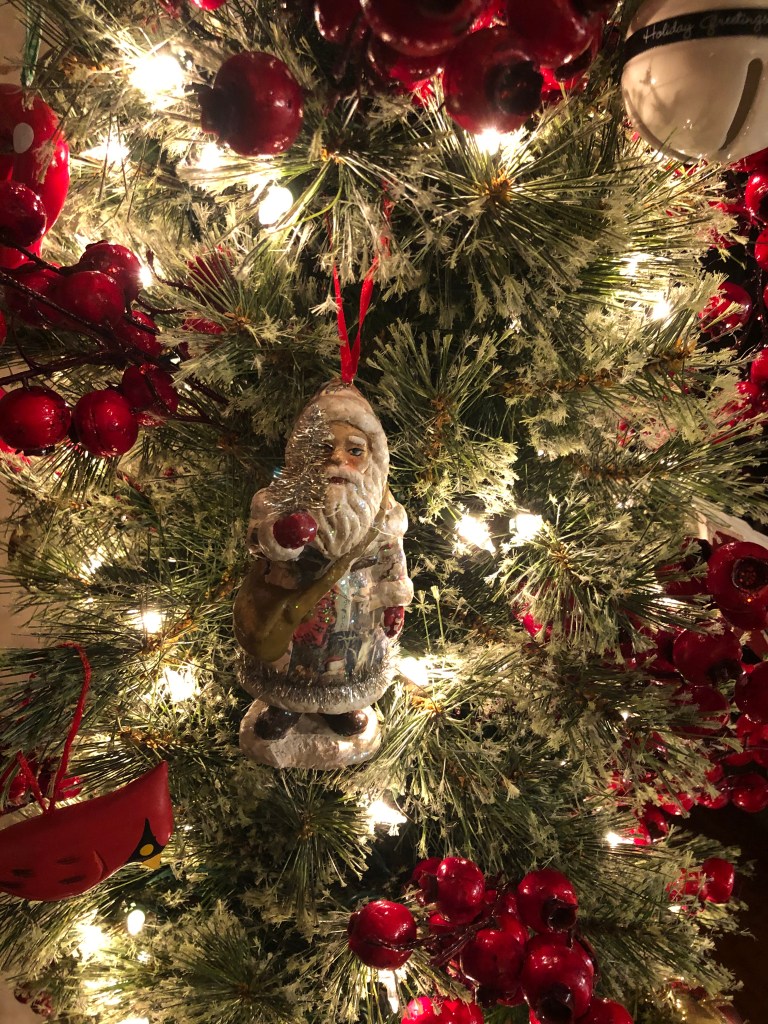 My Christmas tree is an eclectic mix of ornaments. All different. All unique. Seeing this little Santa on the tree every year brings back a special memory. Some years my husband and I exchanged gifts and some years we didn’t. One year we celebrated with our kids early, so on Christmas eve we went to a local gift shop to get a little something for each other to wrap and put under the tree. This is what he got for me. Every time I look at it, I remember that day and the time we spent together.