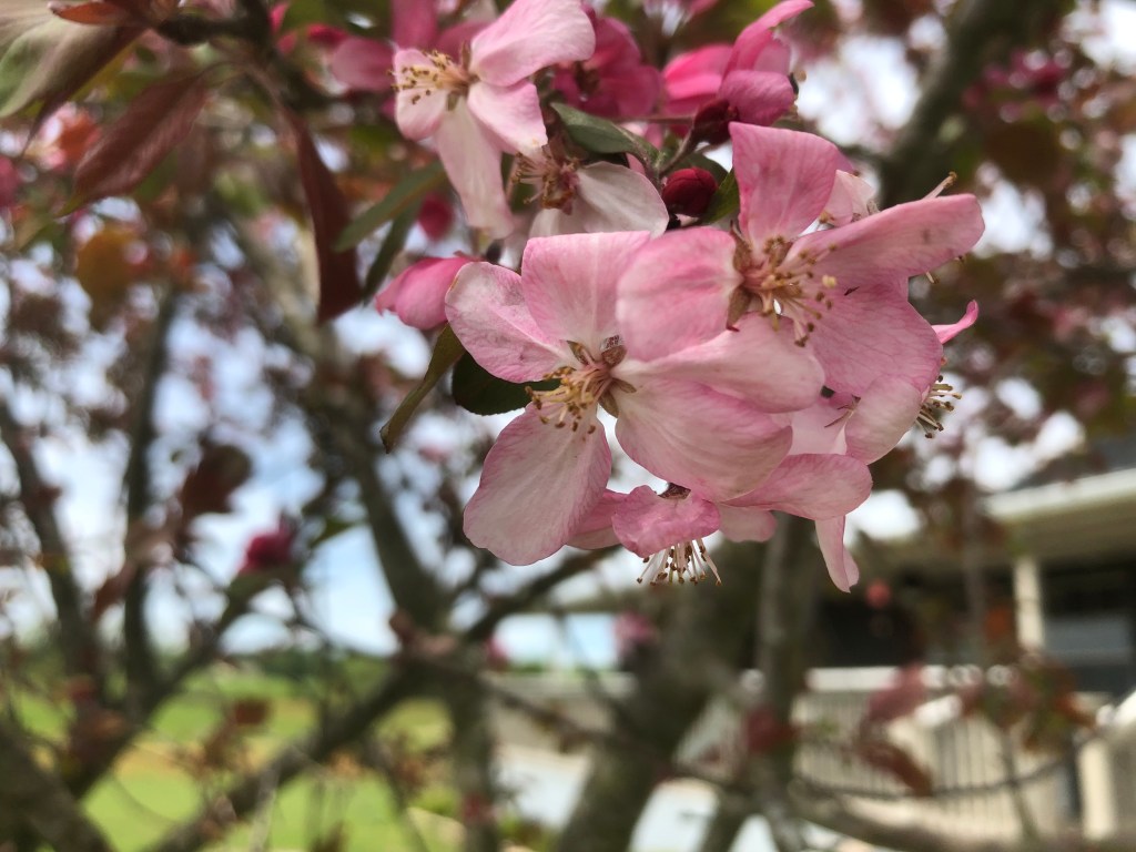 The Crabapple tree in my front yard gets prettier every year. I’m thinking it’s over ten years old. My daughter planted it. They are believed to have originated in the mountains of Kazakhstan. Though it’s not clear how they arrived here, at least three crabapple species are native to North America: Malus coronaria, M. fusca, and M. ioensis.